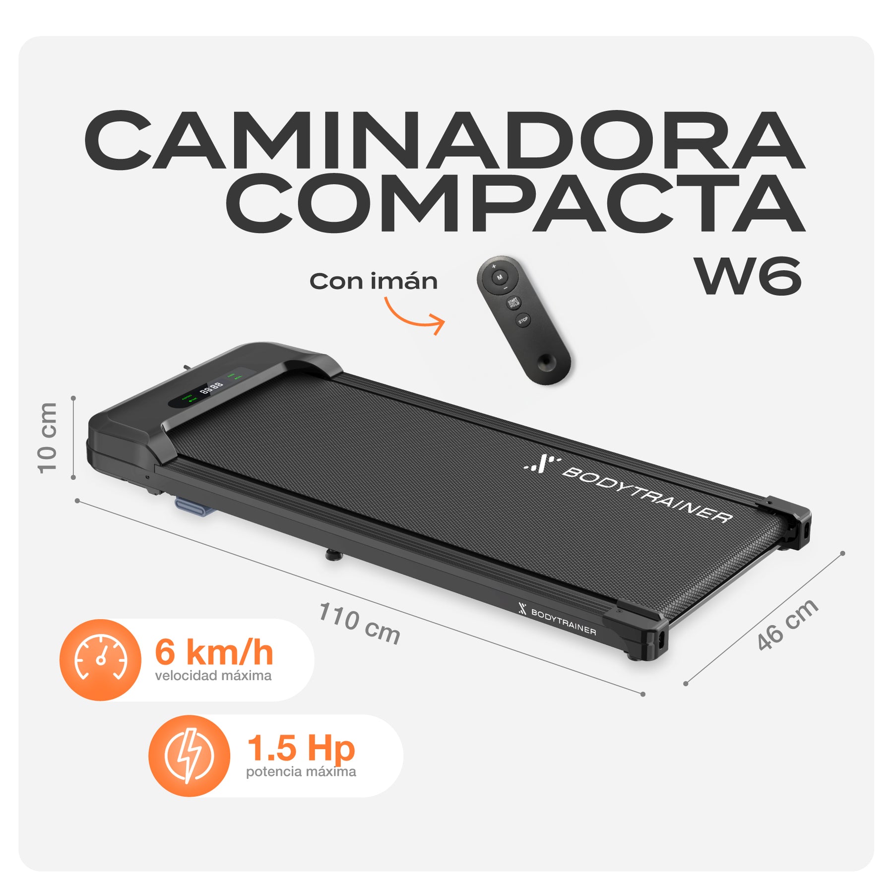 ¡Guárdala bajo tu cama y deslízala cuando la necesites! La Caminadora Eléctrica Compacta W6 by Bodytrainer es una opción perfecta para mantenerte activo en cualquier momento y lugar. Cuenta con un diseño compacto y muy práctico que se adapta a cualquier espacio. Puedes deslizarla para utilizarla y luego guardarla bajo la cama o sofá cuando no esté en uso.