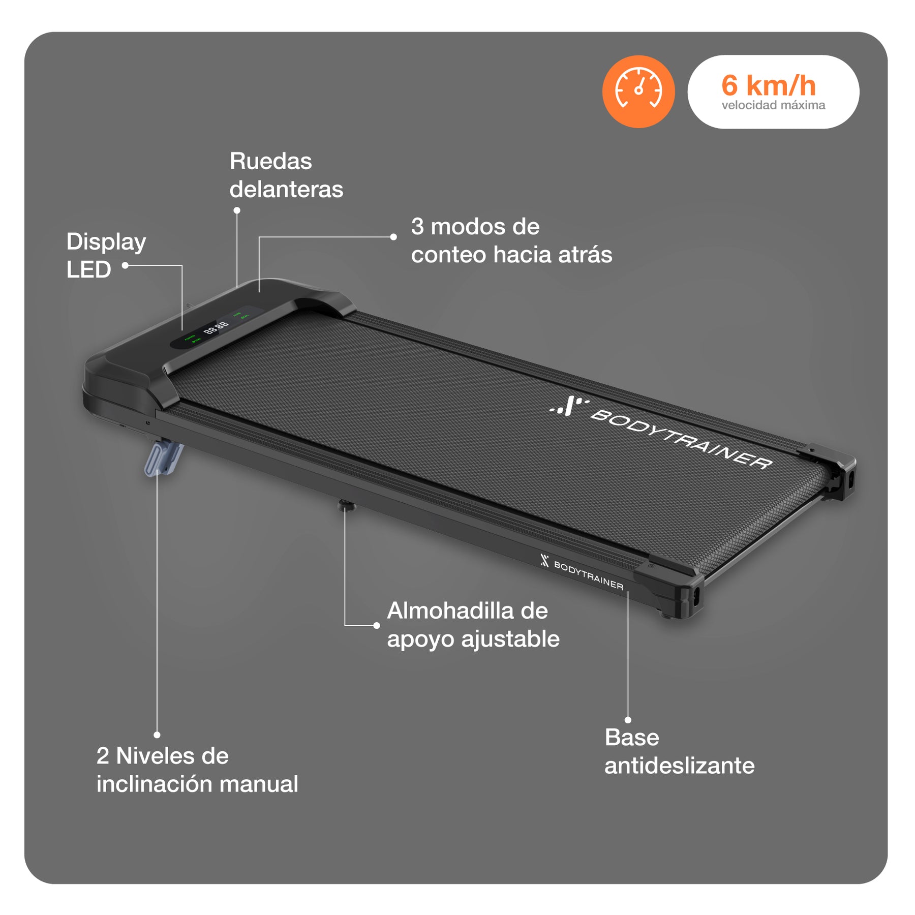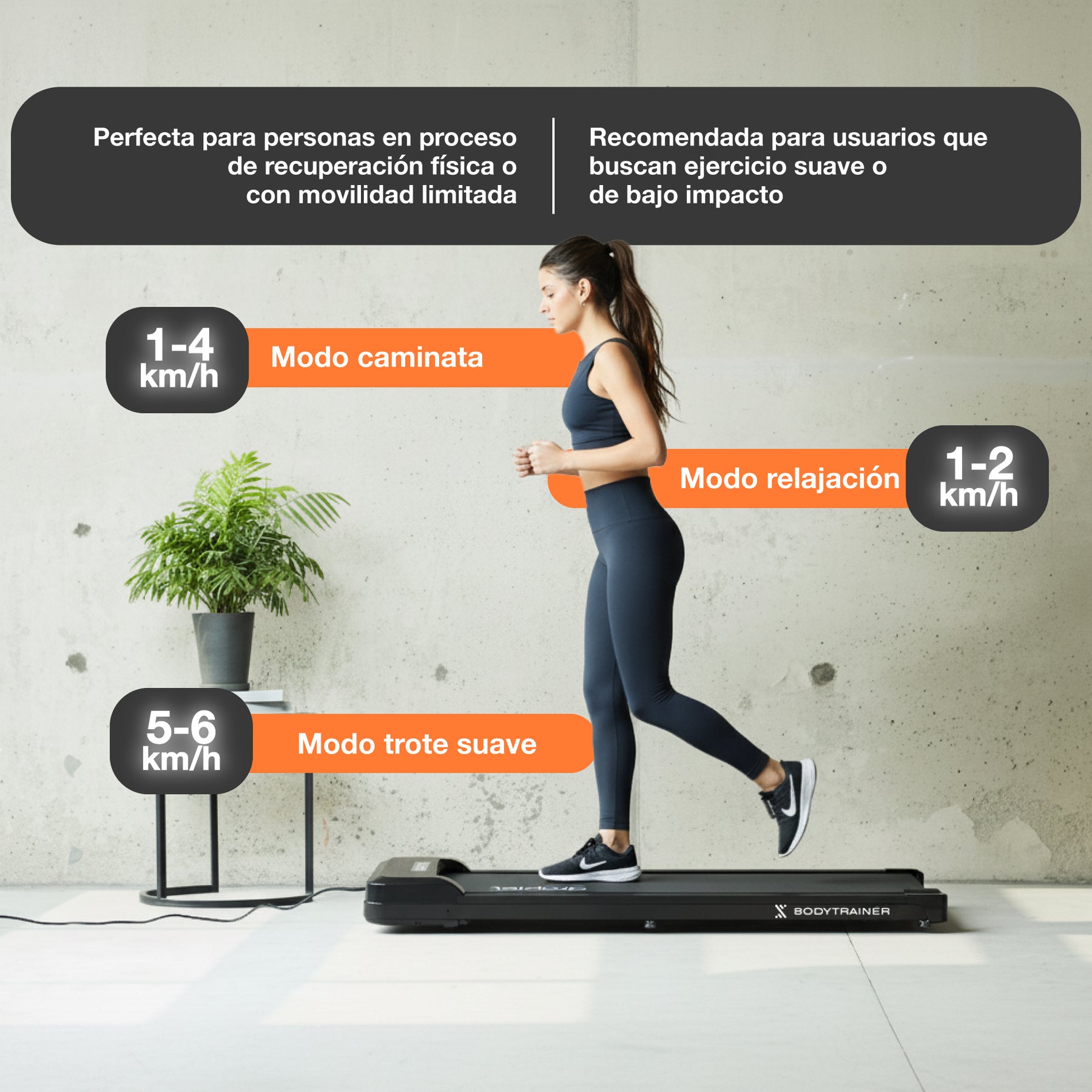 • Mantente en actividad en casa o en la oficina: Ideal para caminar o trotar suave mientras trabajas, ves tus series o escuchas música. Perfecta para escritorios de altura regulable (standing desk).