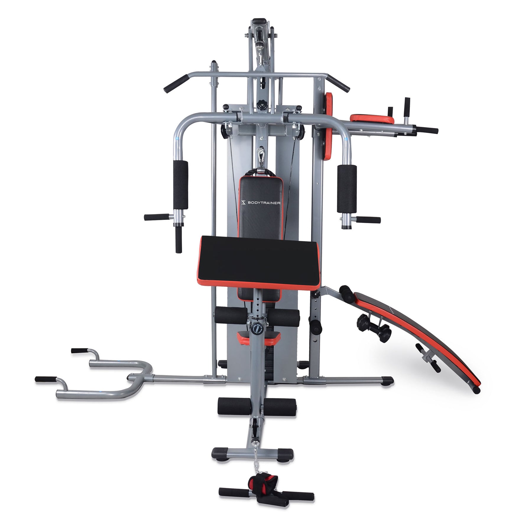 Entrena todo tu cuerpo en casa con el Multigimnasio HM-320 by Bodytrainer. Su diseño compacto y robusto, con estructura de acero y tapizado acolchado en negro, te permitirá realizar más de 30 ejercicios diferentes para trabajar pecho, espalda, brazos, piernas, hombros y abdomen.